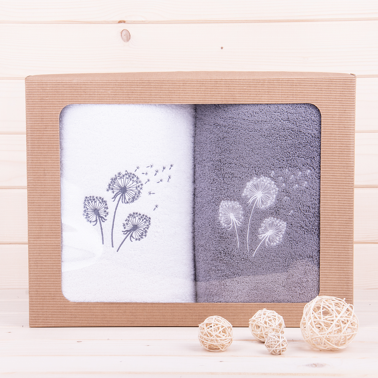 Komplet ręczników 2*70x140 cm Dmuchawce biały + szary wzór 1