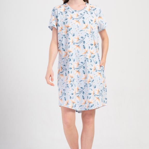 Koszula nocna damska 409206 rozm: 5XL Kwiaty na błękicie