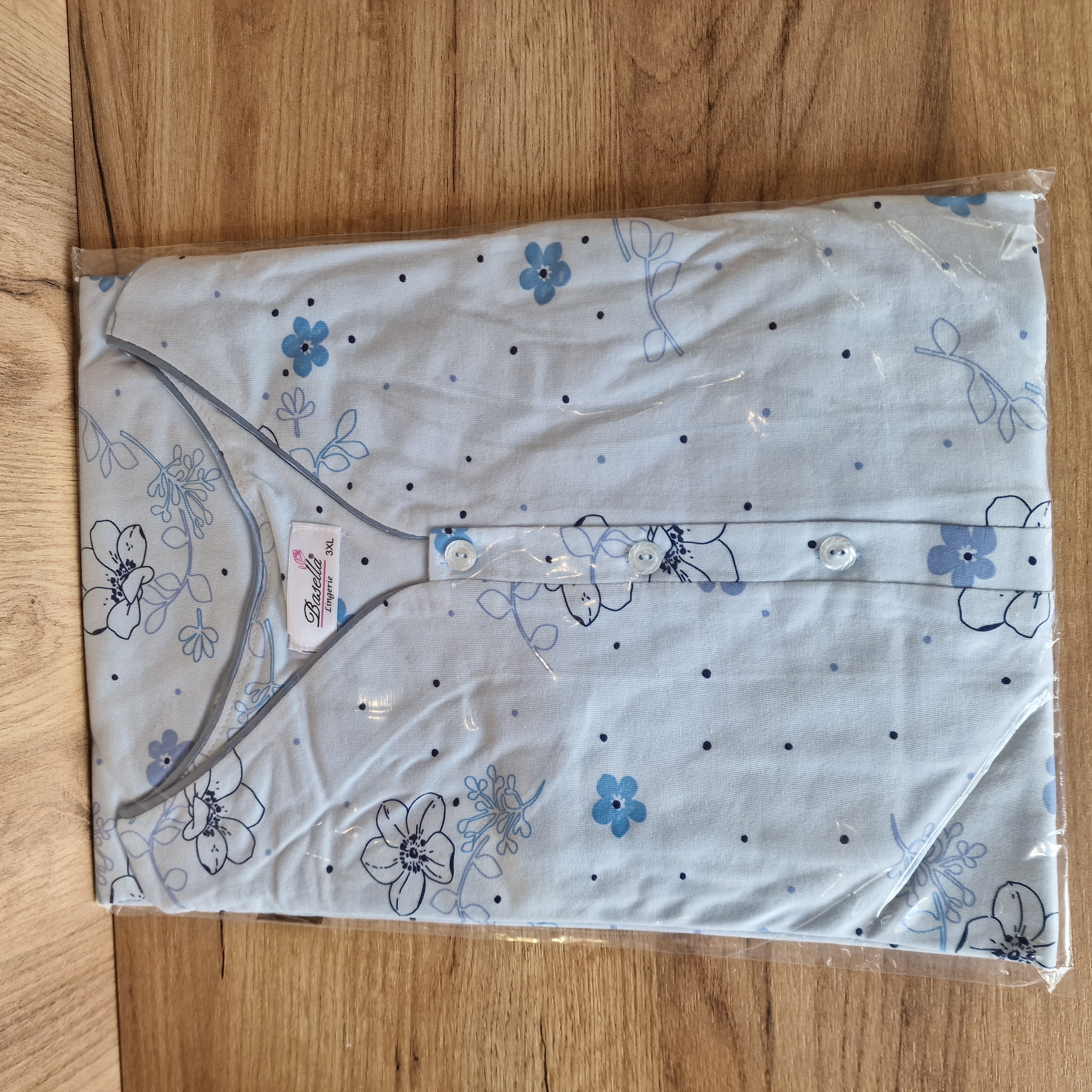 Koszula nocna damska KWIATUSZKI rozm: 3XL Niebieskie kwiatuszki na błękitnym tle