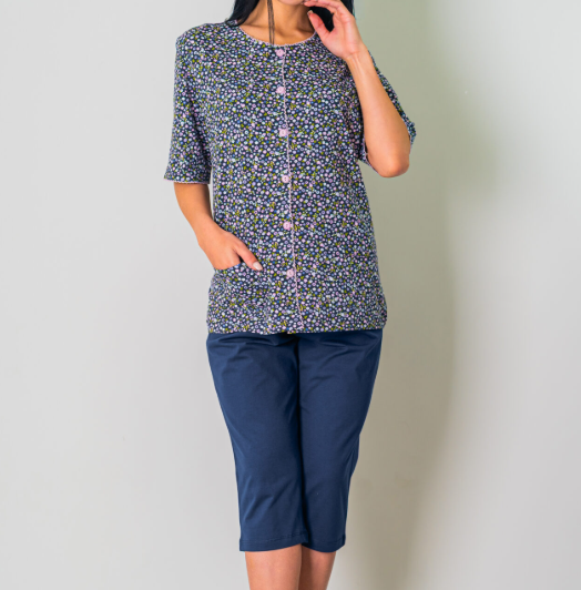 Piżama damska 3/4 spodnie KWIATUSZKI rozm: XL granat rozpinana