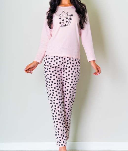 Piżama damska z długimi spodniami i rękawem KOTEK rozm: S jasny róż