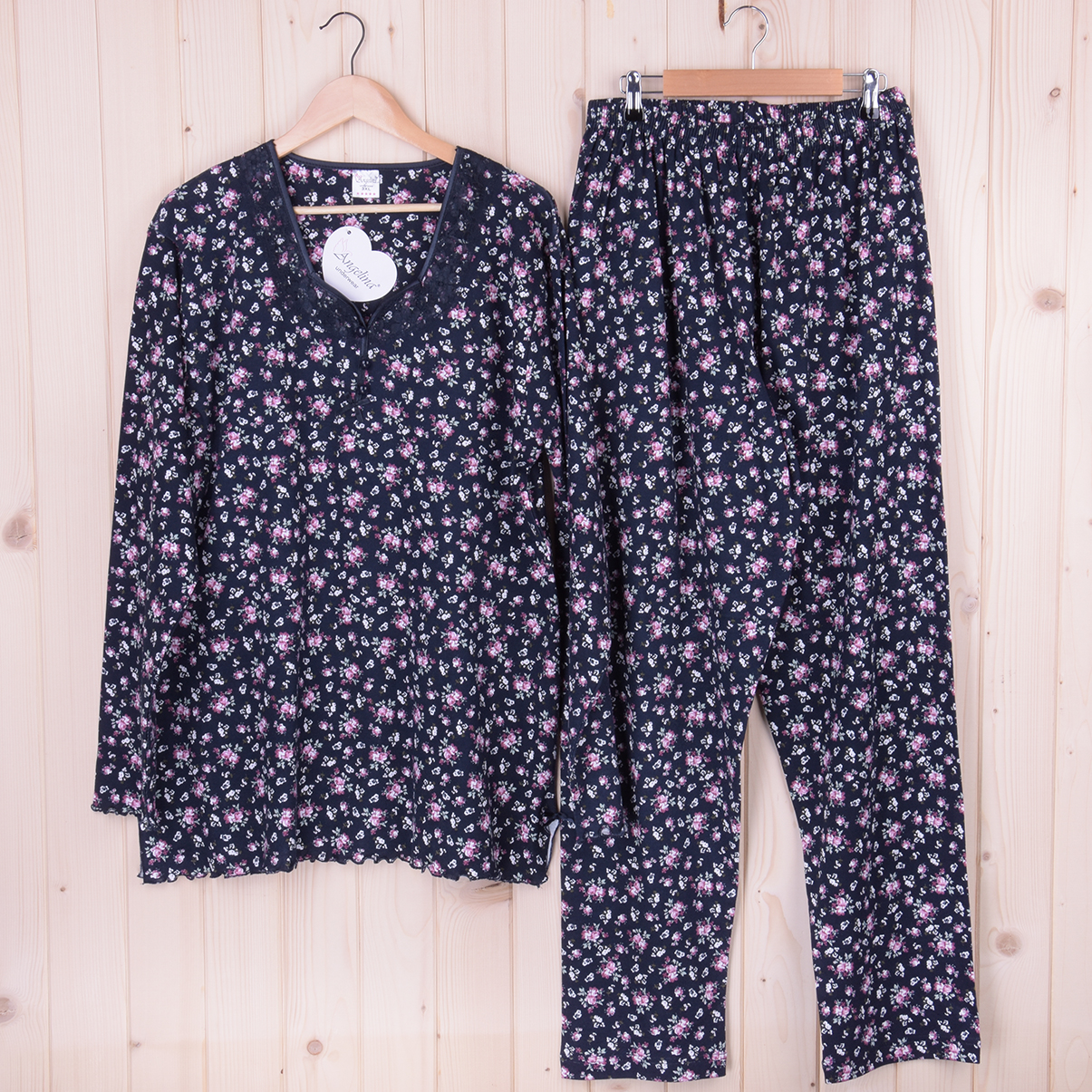 Piżama damska z długimi spodniami i rękawem RÓŻYCZKI rozm: 3XL granat