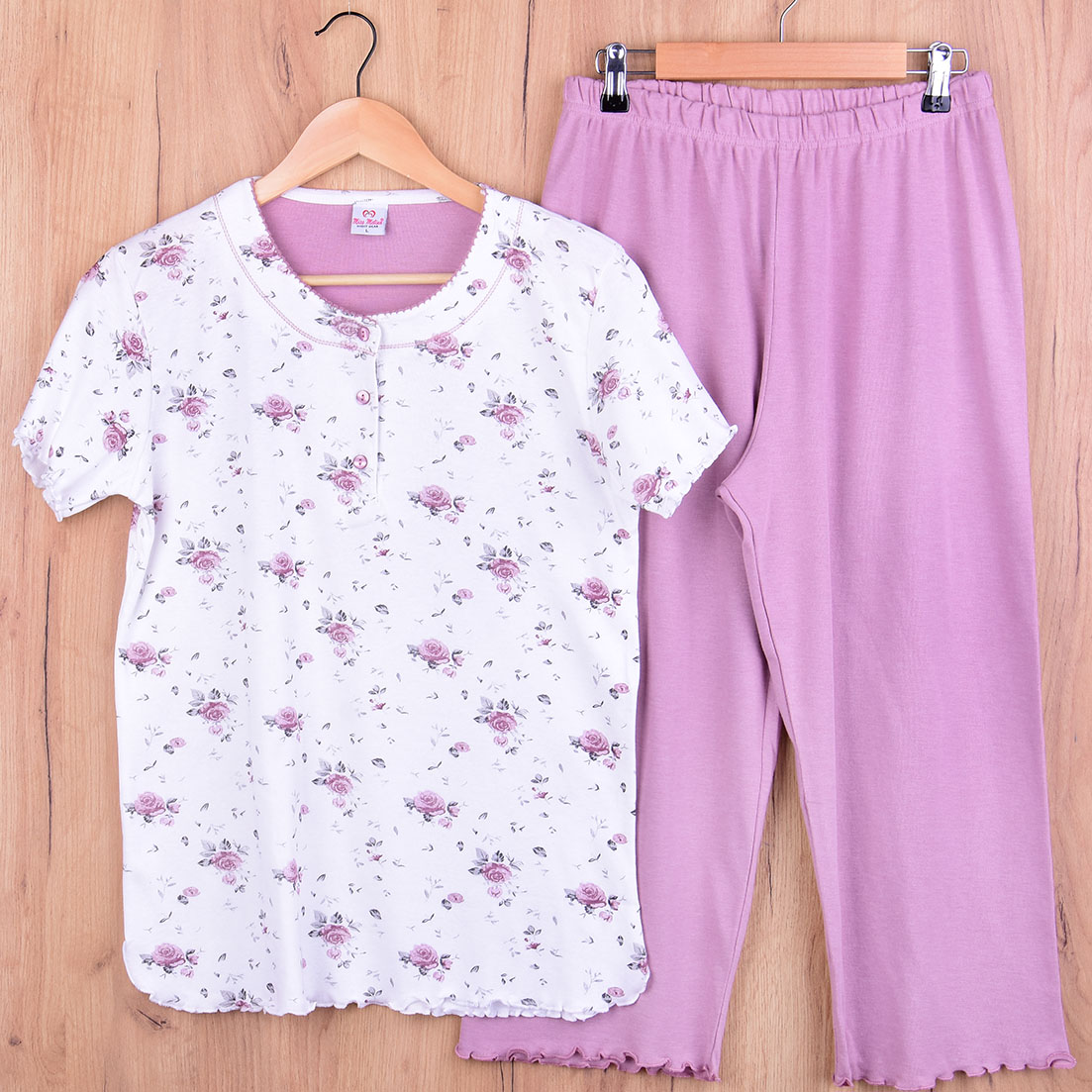 Piżama damska z krótkim rękawem i 3/4 spodnie 2011-1 rozm: XXL na białym tle różowe różyczki