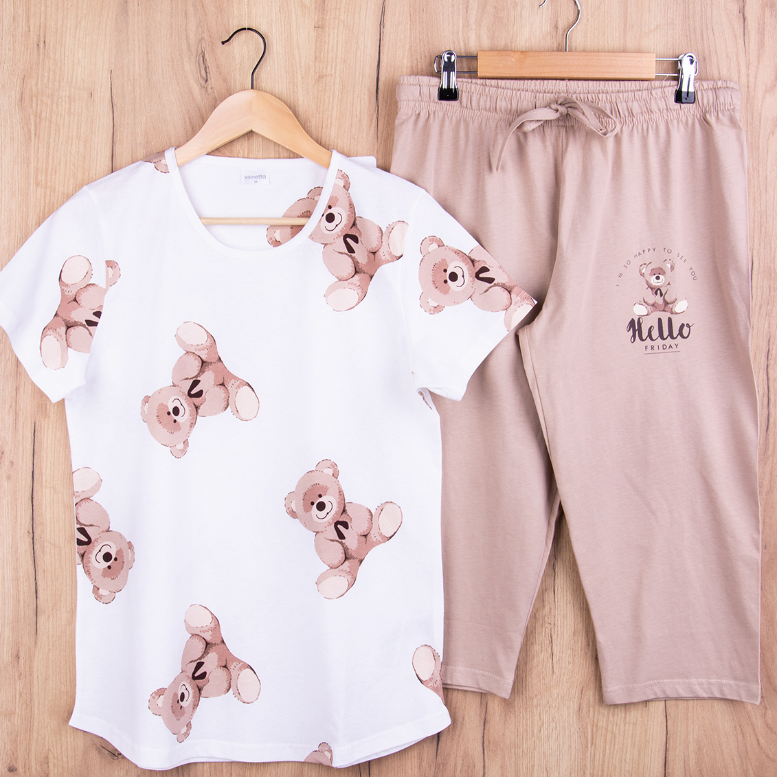 Piżama damska z krótkim rękawem i 3/4 spodnie 407095 rozm: XXL beżowe misie na kremie
