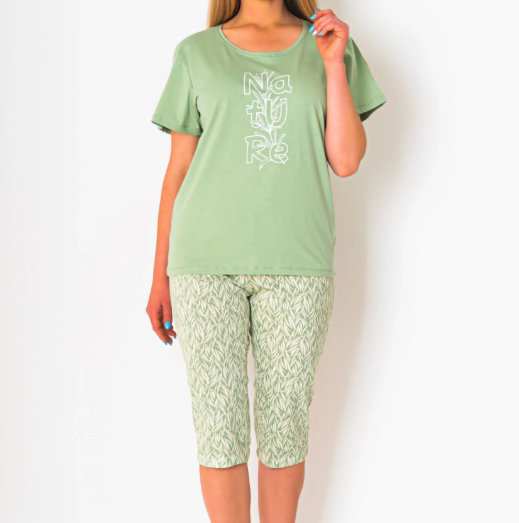 Piżama damska z krótkim rękawem i 3/4 spodnie NATURE rozm: XL zieleń