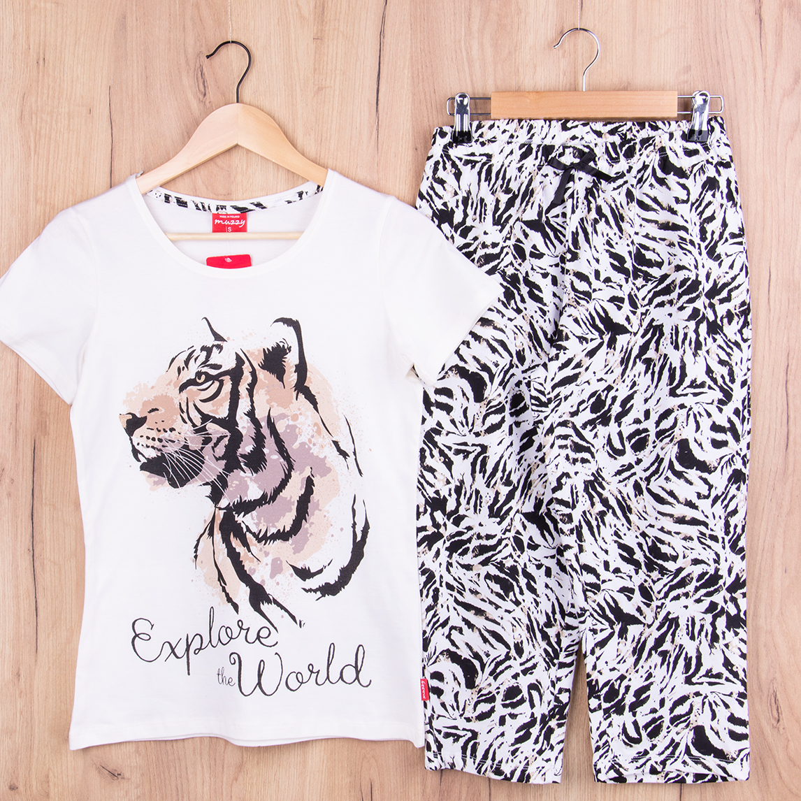 Piżama damska z krótkim rękawem i 3/4 spodnie TYGRYS rozm: S krem