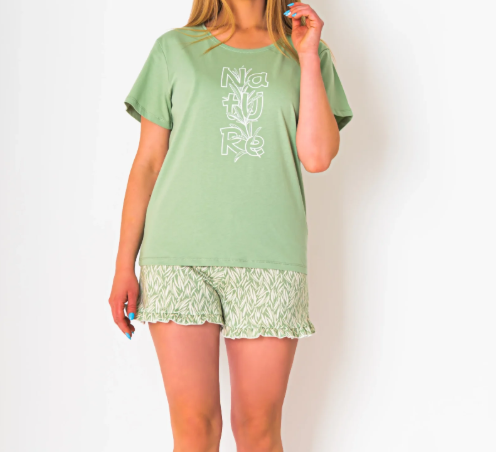 Piżama damska z krótkim rękawem i szortami NATURE rozm: L zieleń