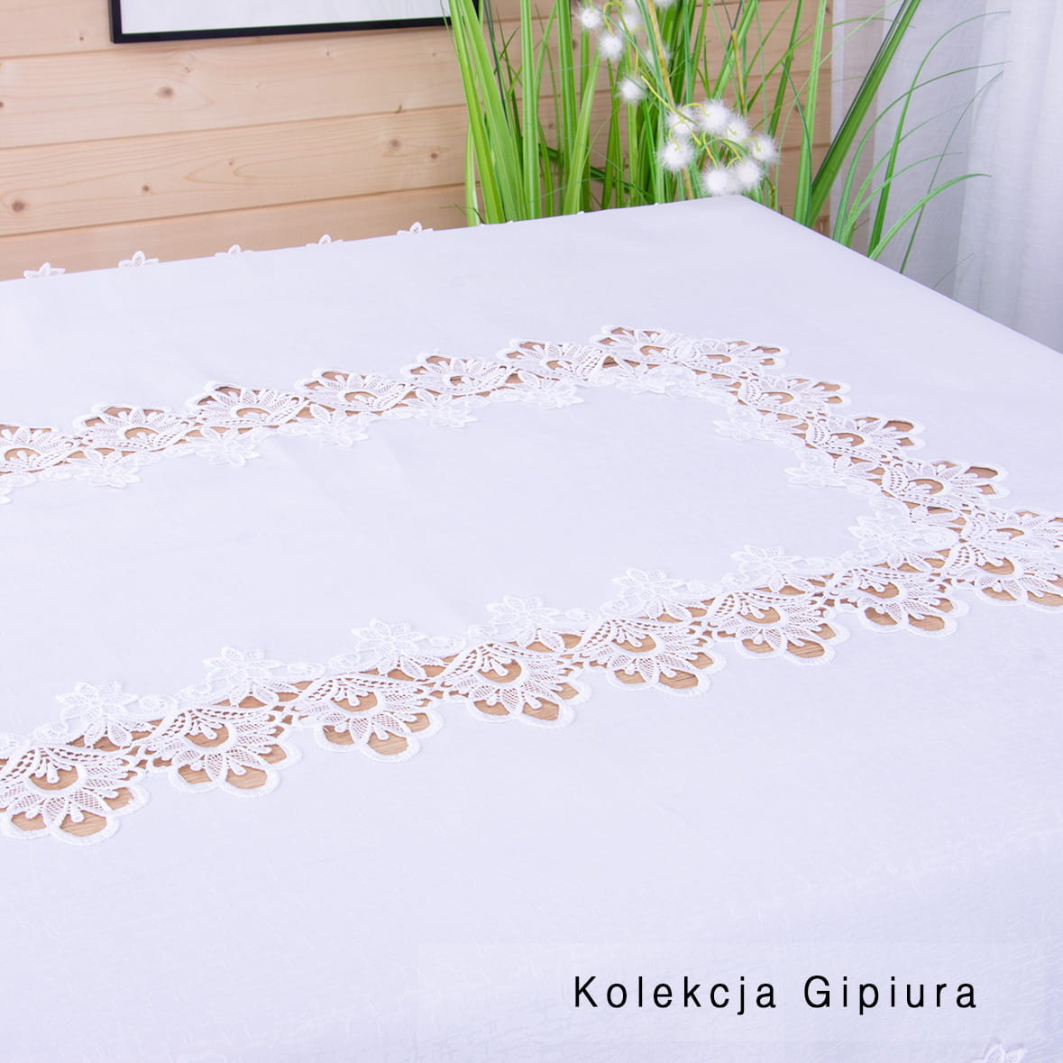 Obrus DA-384 110x160 cm z gipiurą Biały owal
