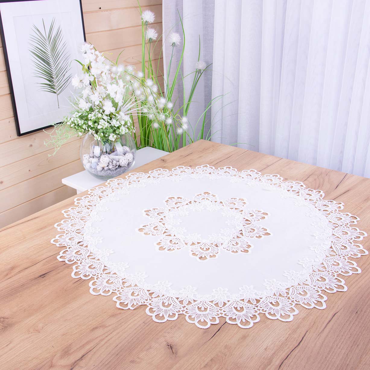 Obrus DA-384 śr 110 cm z gipiurą Biały koło