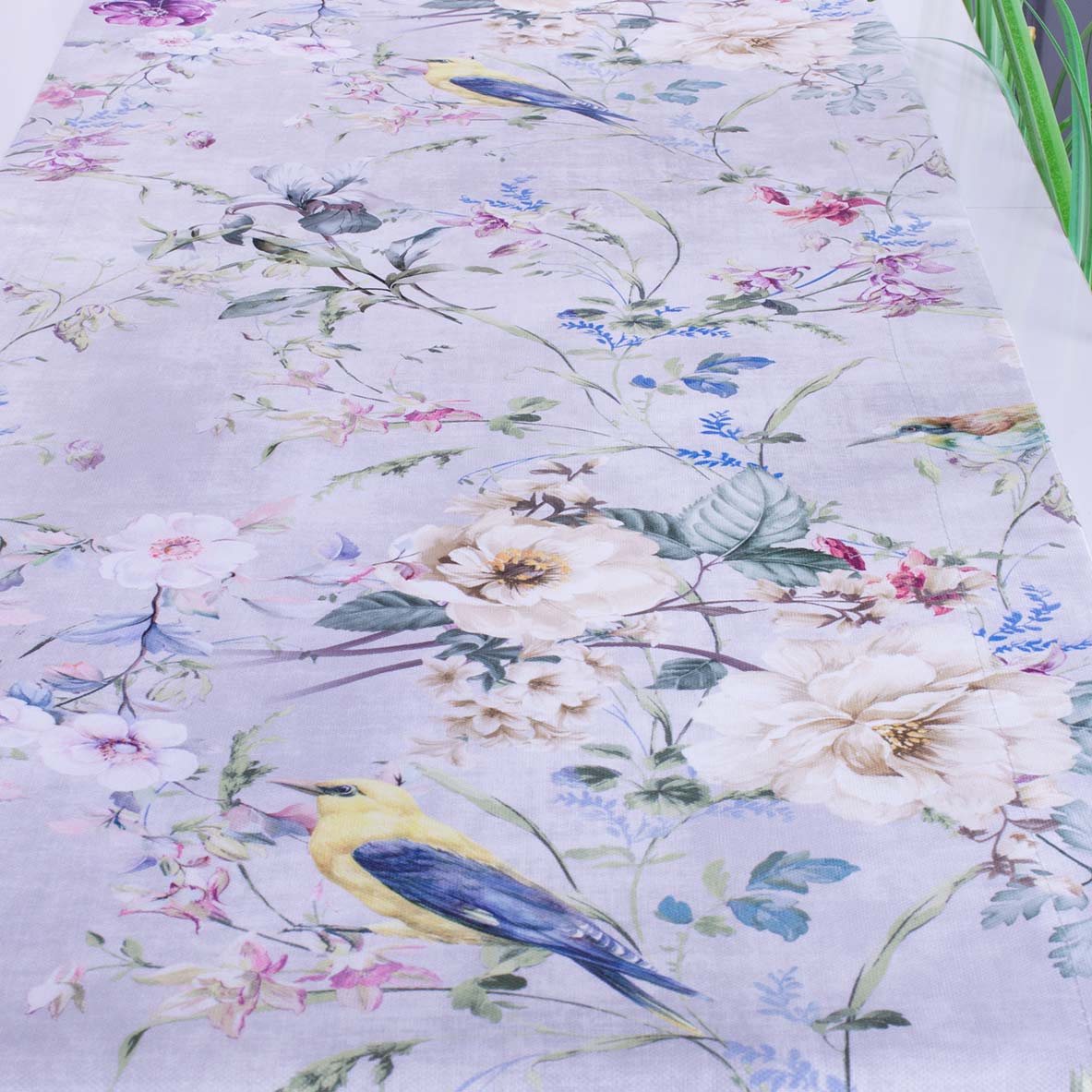 Pas SOFT 40x120 cm 410026/001 Kwiaty i ptaszki na jasnoszarym tle