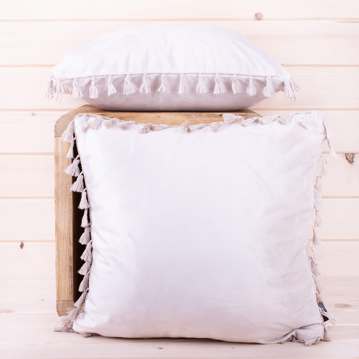 Poszewka ozdobna 40x40 cm Beż + frędzelki