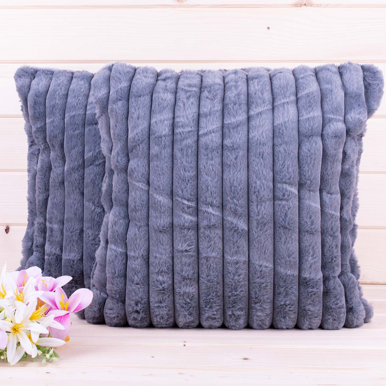 Poszewka ozdobna 40x40 cm Prążki Ciemny szary