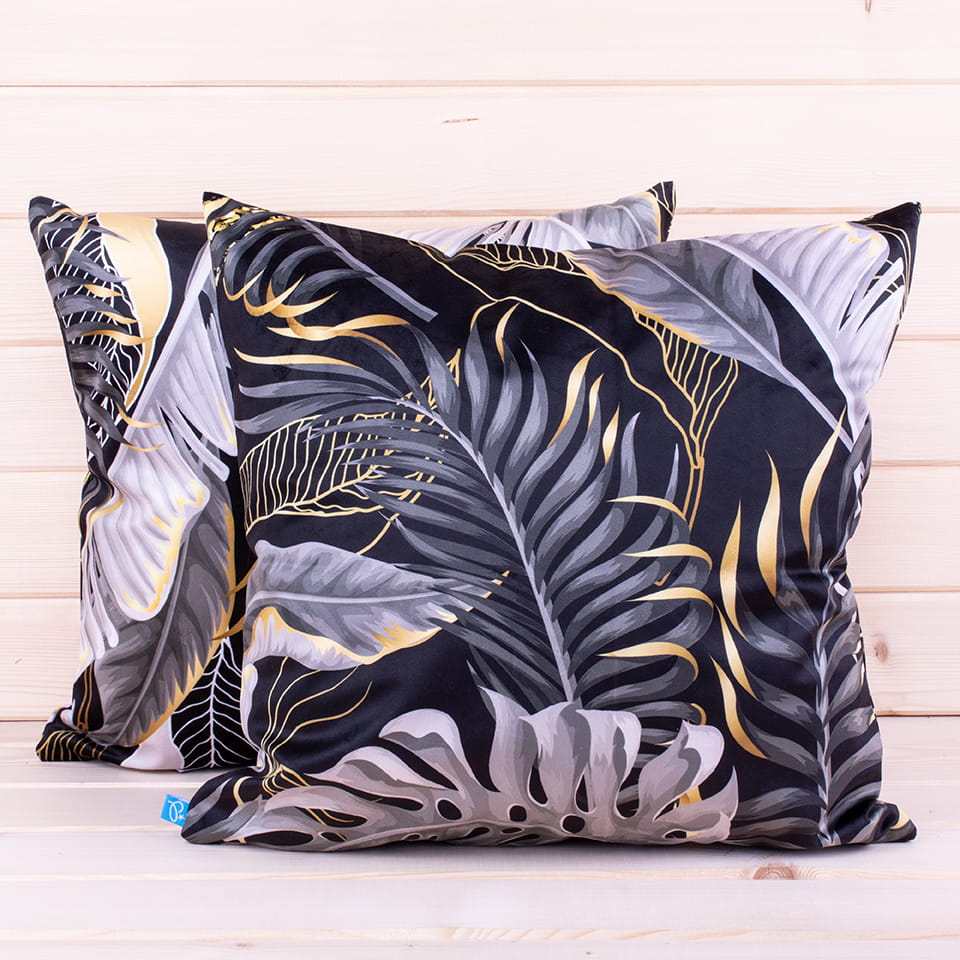 Poszewka dostępna jest w szerokiej gamie kolorystycznej(od stonowanych pasteli po intensywne barwy) jak i różnorodnych wzorach(liście, kwiaty, geometrie),