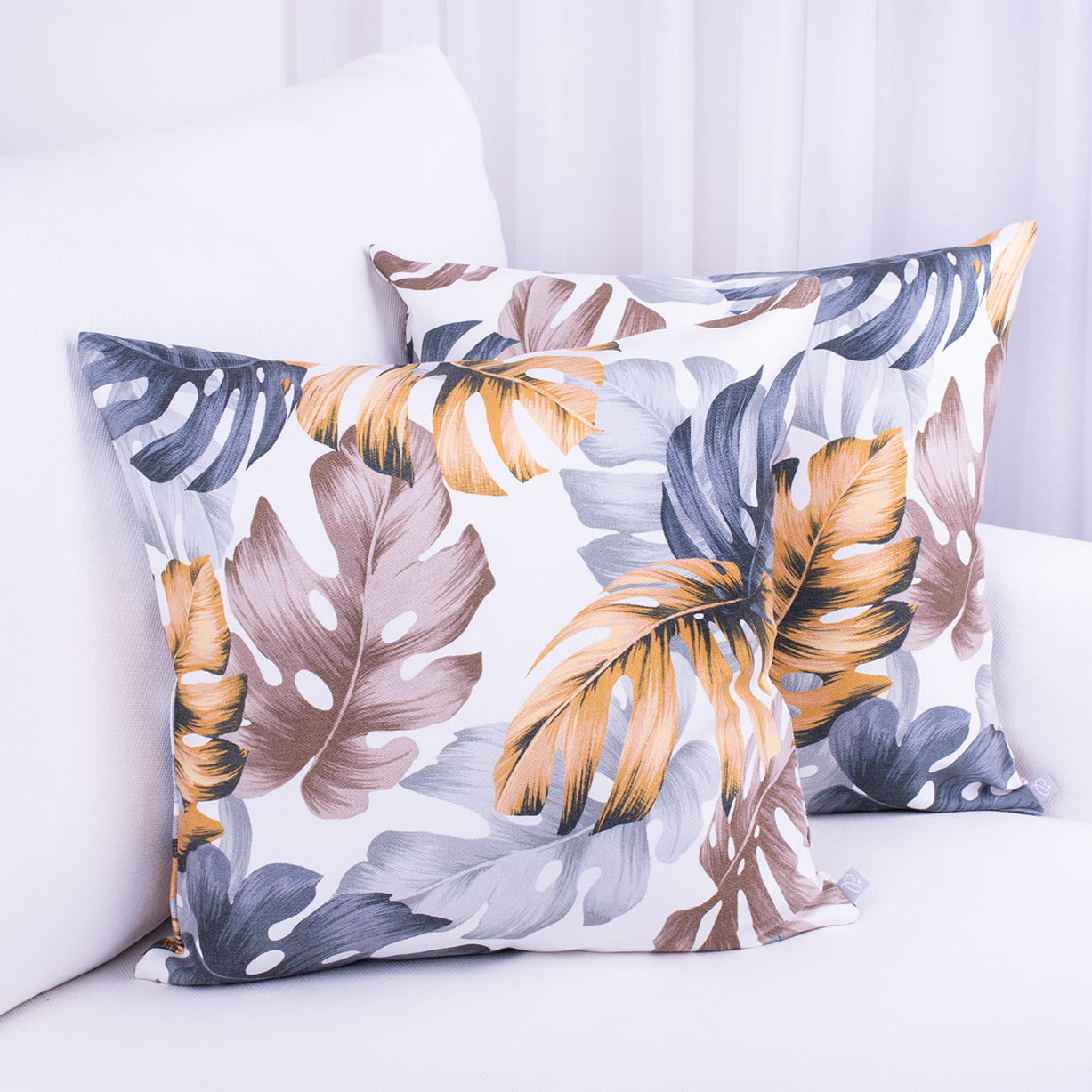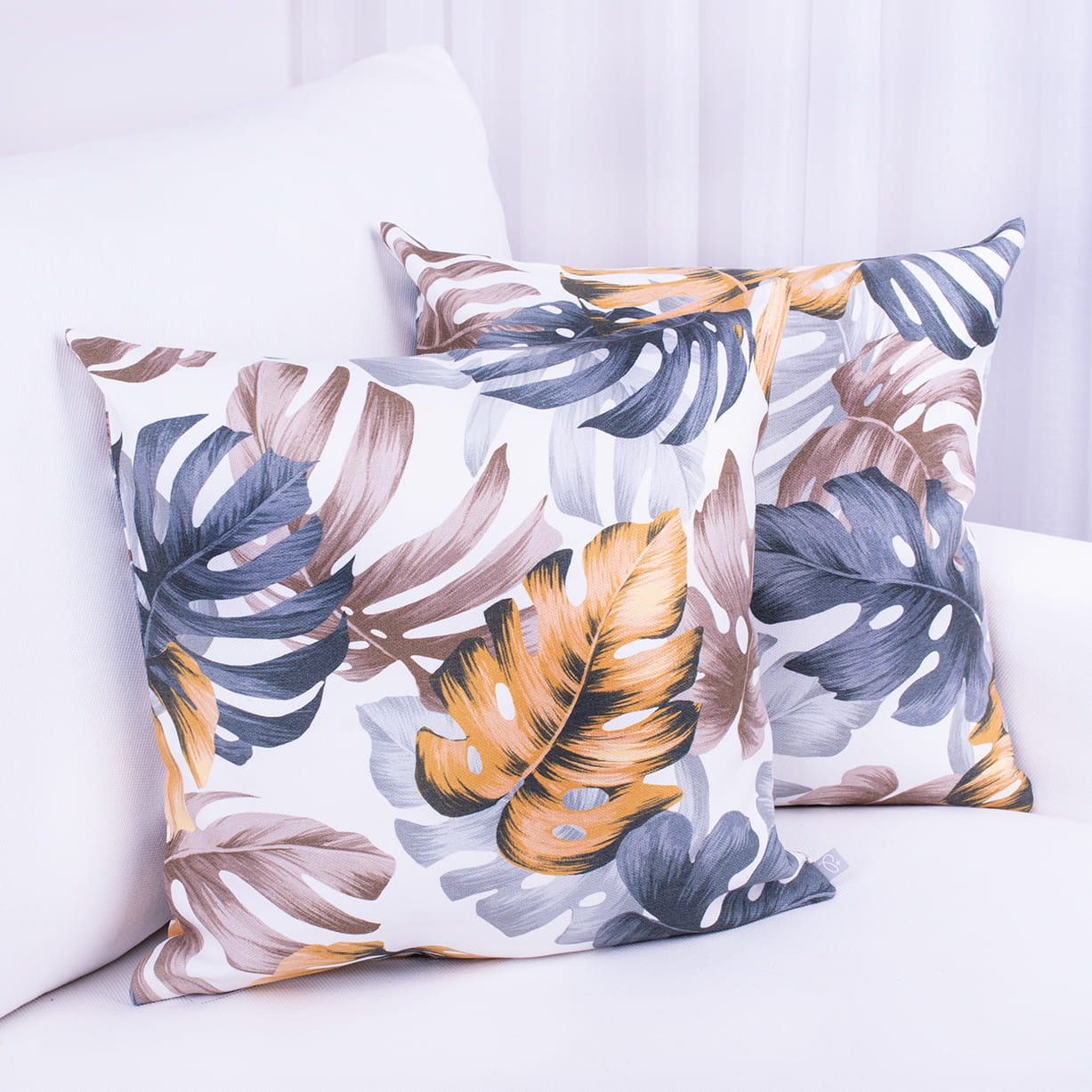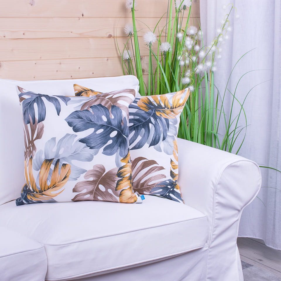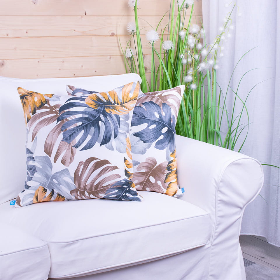 Poszewka ozdobna na poduszkę o wymiarach 45x45 cm z motywem liści.