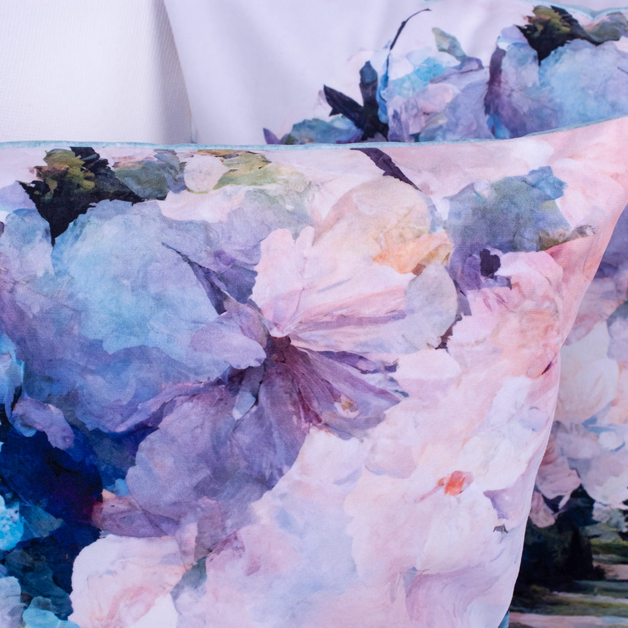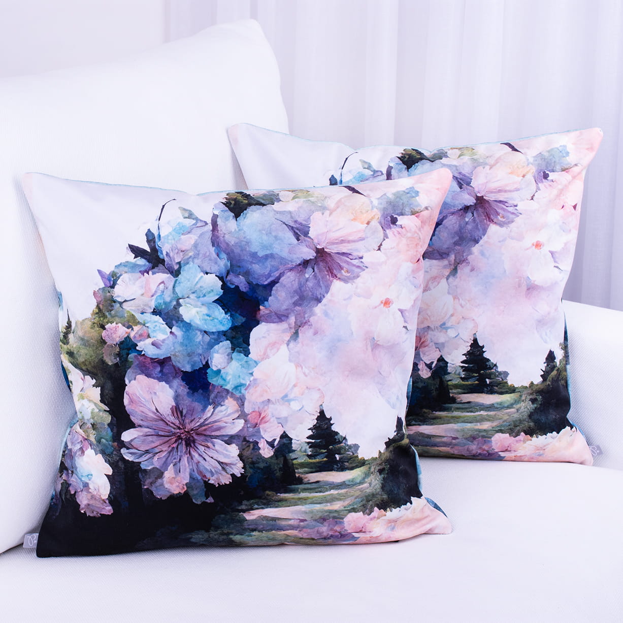 Poszewka ozdobna na poduszkę o wymiarach 45x45 cm z motywem kwiatów.