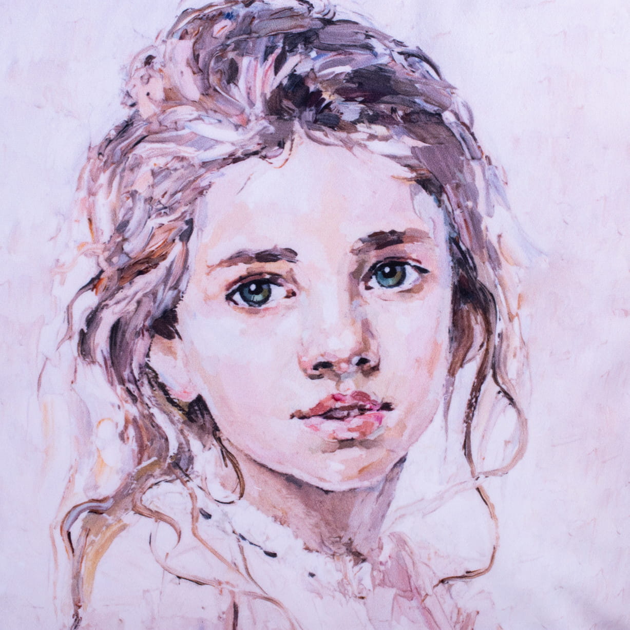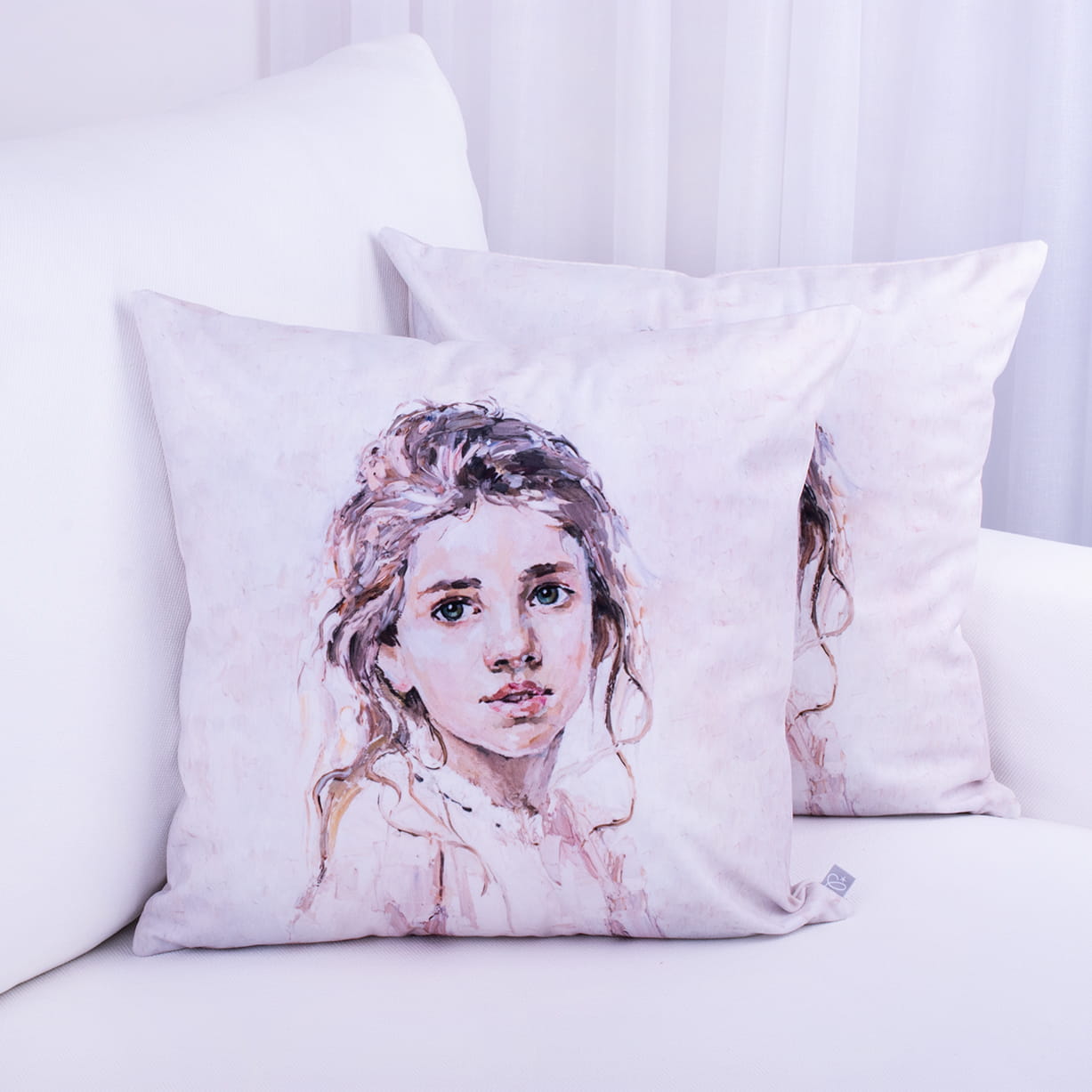 Poszewka ozdobna na poduszkę o wymiarach 45x45 cm z motywem portretu.