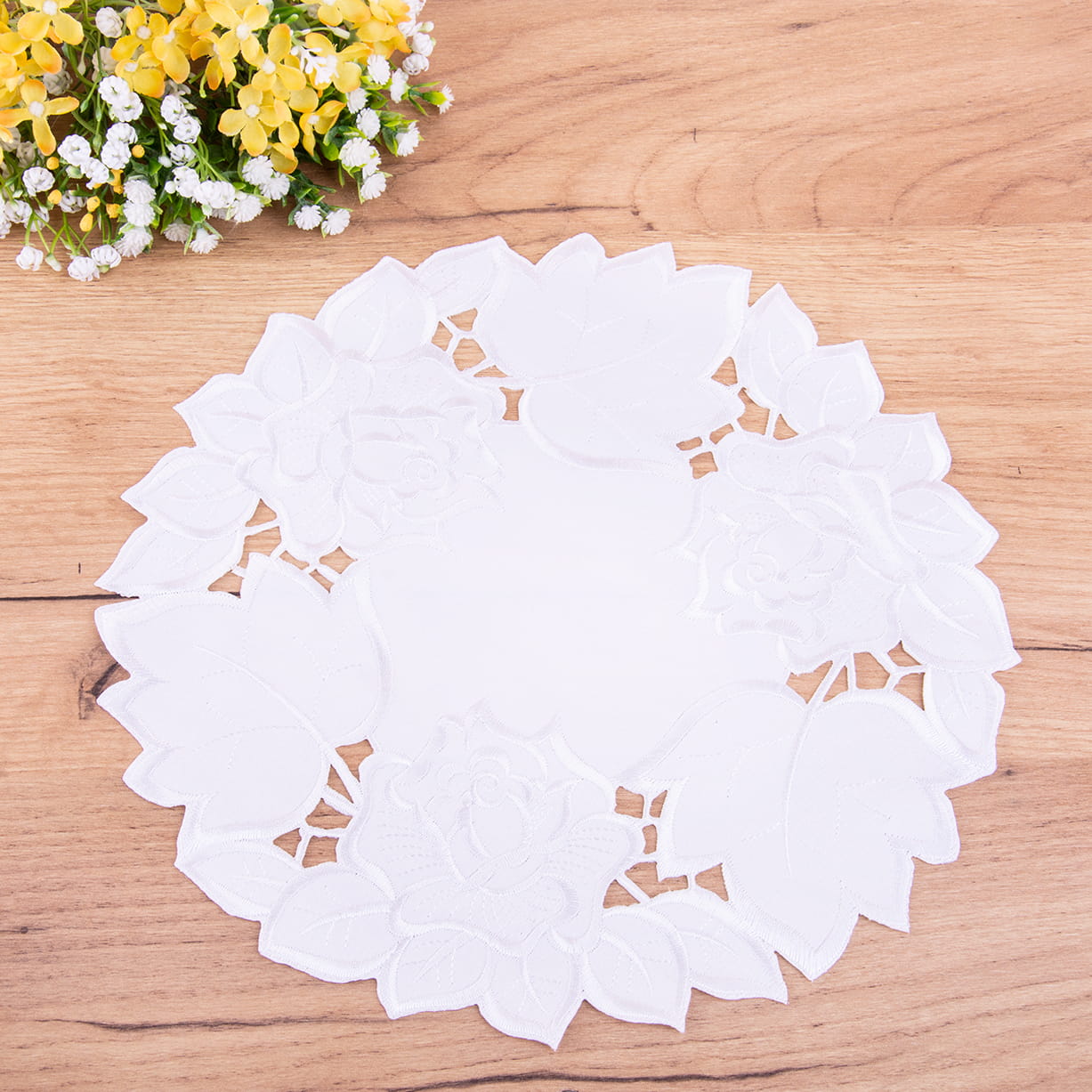 Serwetka koło 30 cm HL-420-W Róże haftowane biała
