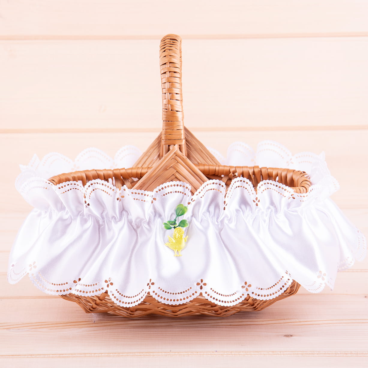 Falbanka satynowa na średni koszyczek wielkanocny z kurczaczkiem