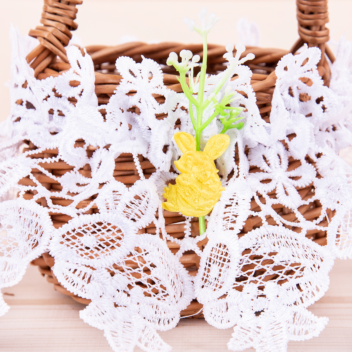 Falbanka z gipiurą na mały koszyczek wielkanocny – elegancka dekoracja