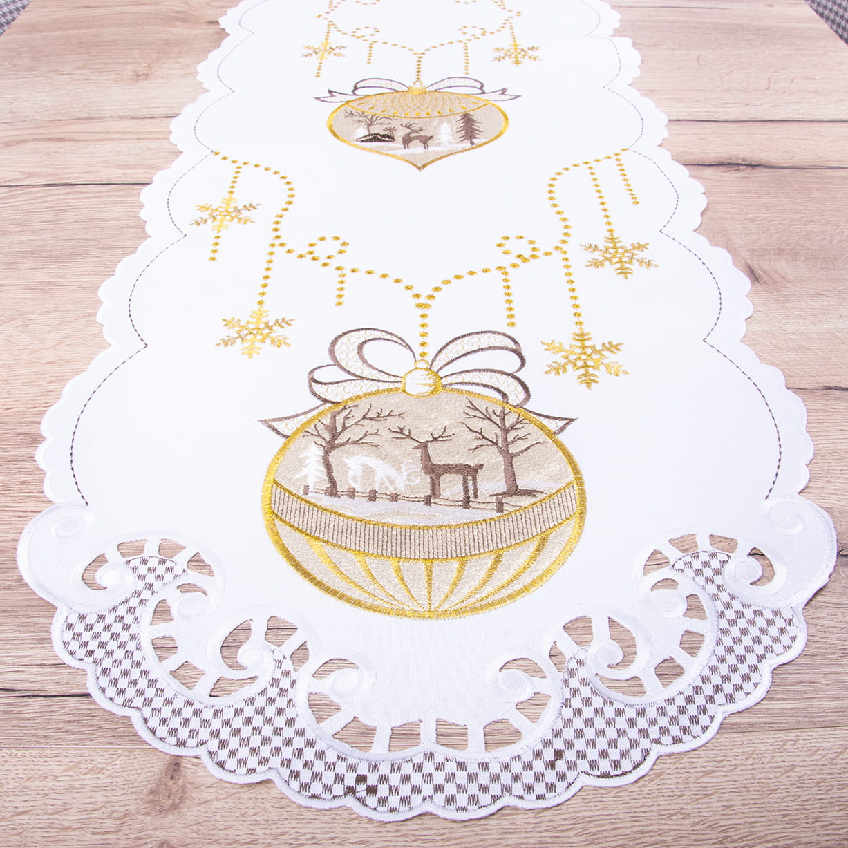 Pas świąteczny haftowany 40x200 cm YM30273 Bombka złota