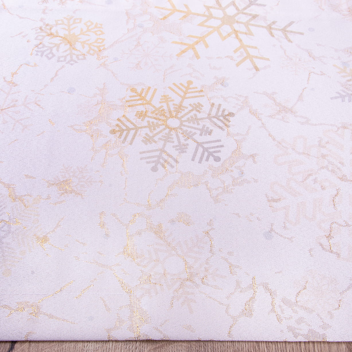 Pas świąteczny 40x220 cm wzór 390549/101 śnieżynki na kremowo-złotym tle