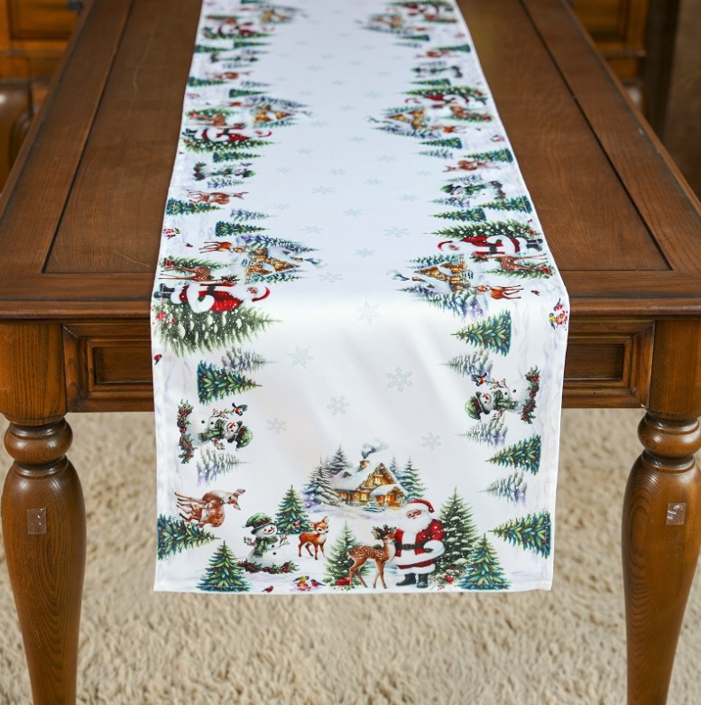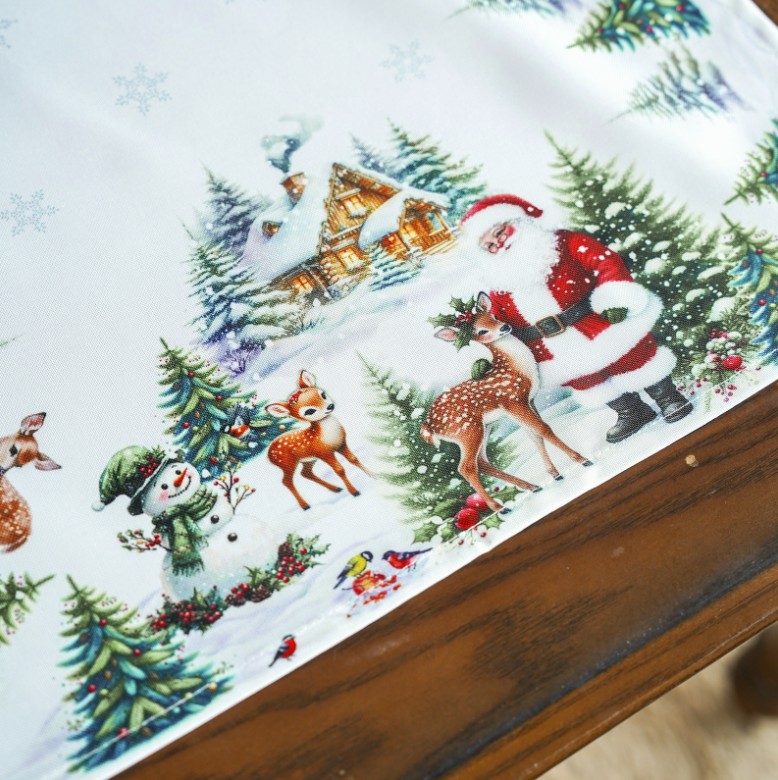 Pas świąteczny drukowany 40x180 cm PX-220 Mikołaje i bałwany na białym tle