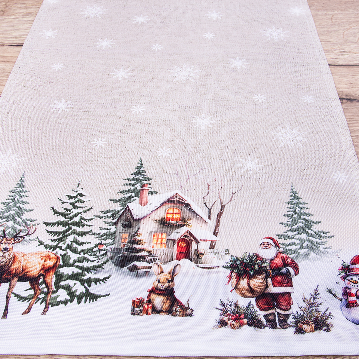 Pas świąteczny drukowany 40x180 cm wzór 971 Zimowy domek
