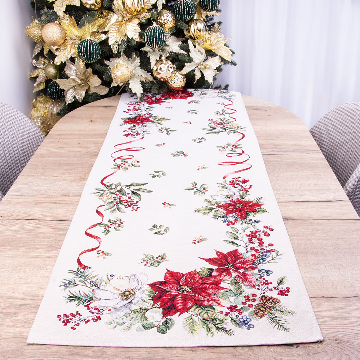 Pas świąteczny gobelinowy 45x140 cm Bożonarodzeniowy wianek