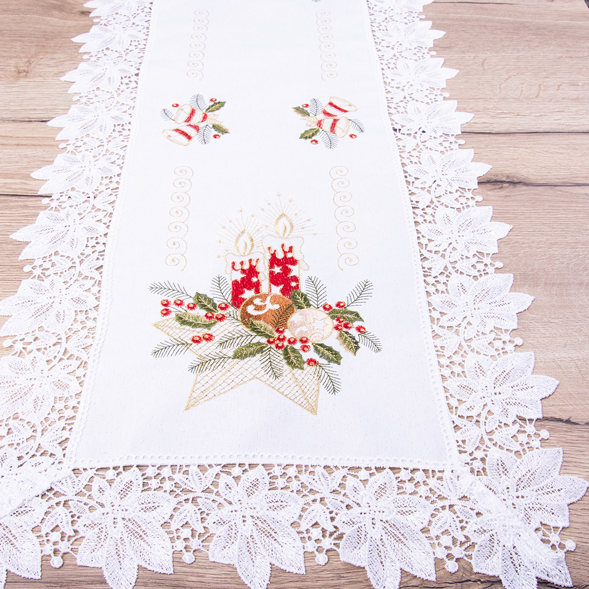 Pas świąteczny z gipiurą 40x150 cm SW-376 Stroik na białym tle