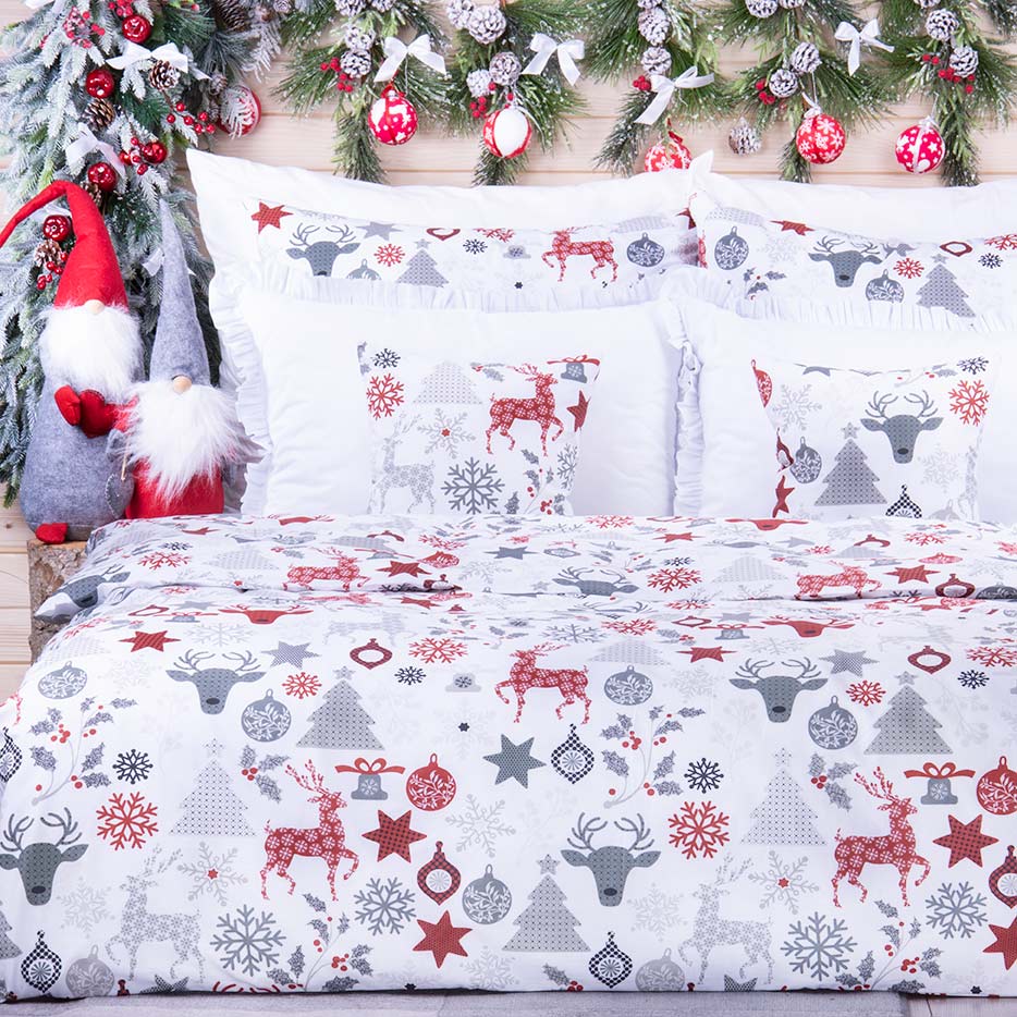 Pościel świąteczna 200x200 cm wzór 67 Renifery i choinki na białym tle