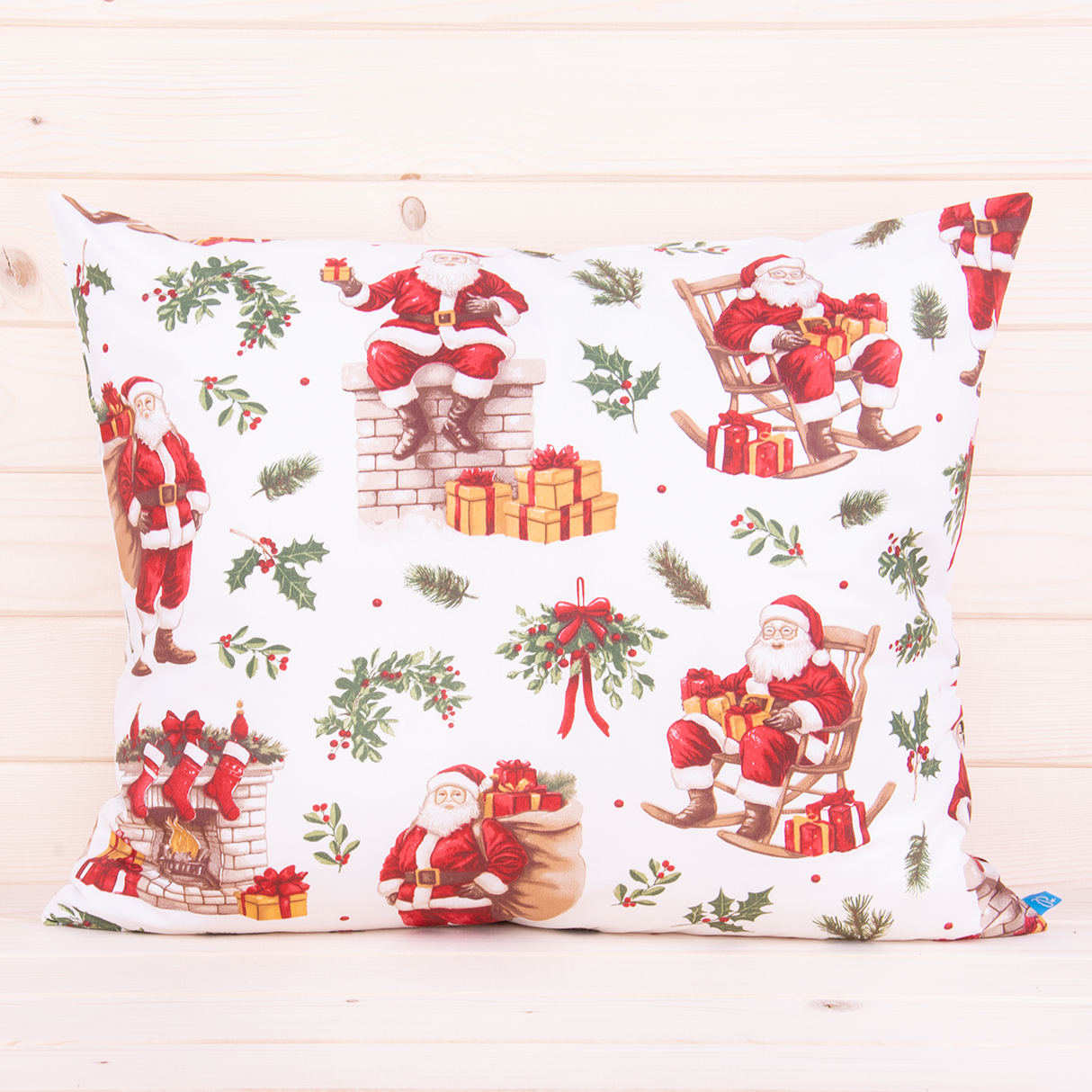Poszewka świąteczna 50x70 cm wzór 112 Mikołaj z prezentami na białym tle