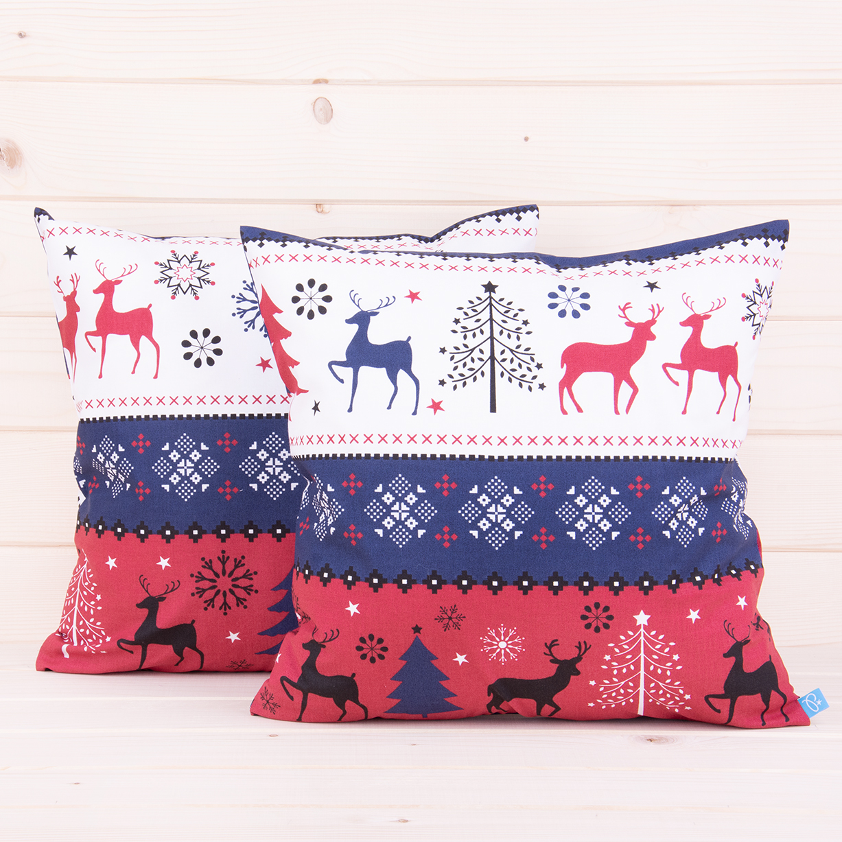 Poszewka świąteczna 70x80 cm wzór 7 Renifery w pasach bordowo-granatowo-białych