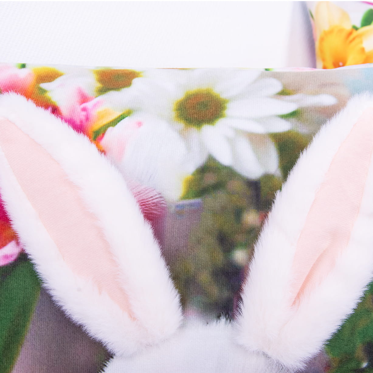 Motyw wielkanocnego zajączka, dodatkowo charakteryzuje się trójwymiarowymi odstającymi uszami co dodaje poszewce oryginalności i uroku.