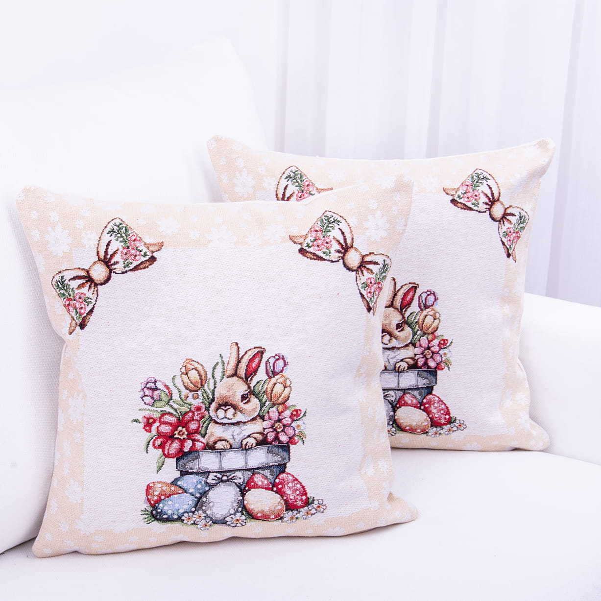 Poszewka gobelinowa 42x42 cm – wielkanocna dekoracja z uroczym zajączkiem