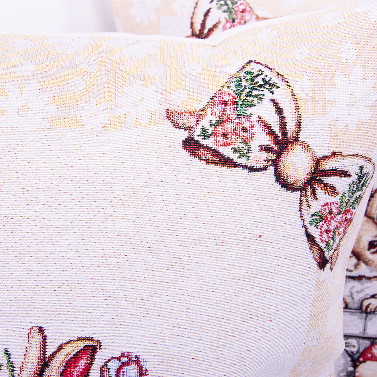 Dekoracyjna poszewka gobelinowa o wymiarach 42x42 cm to wyjątkowa propozycja na wiosenną i wielkanocną aranżację wnętrza.