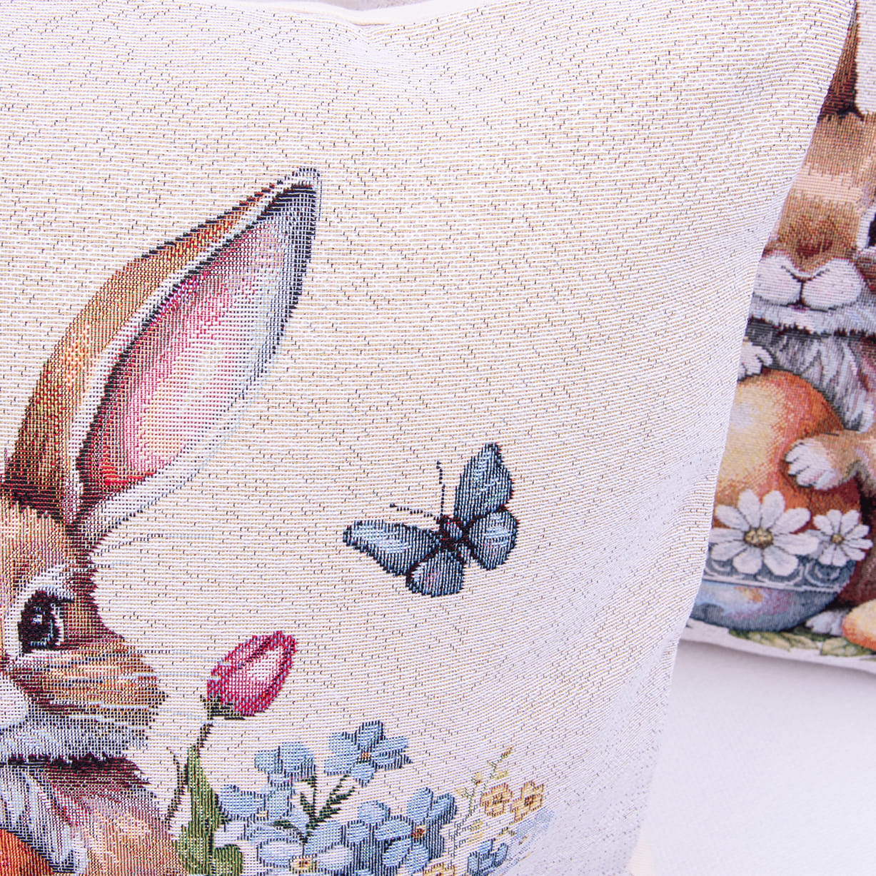 Poszewka gobelinowa 42x42 cm – wielkanocny zajączek wśród wiosennych kwiatów