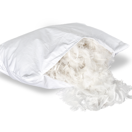 - czyste wypełnienie (pierze/puch) wkładane do nowego wsypu i zaszywane