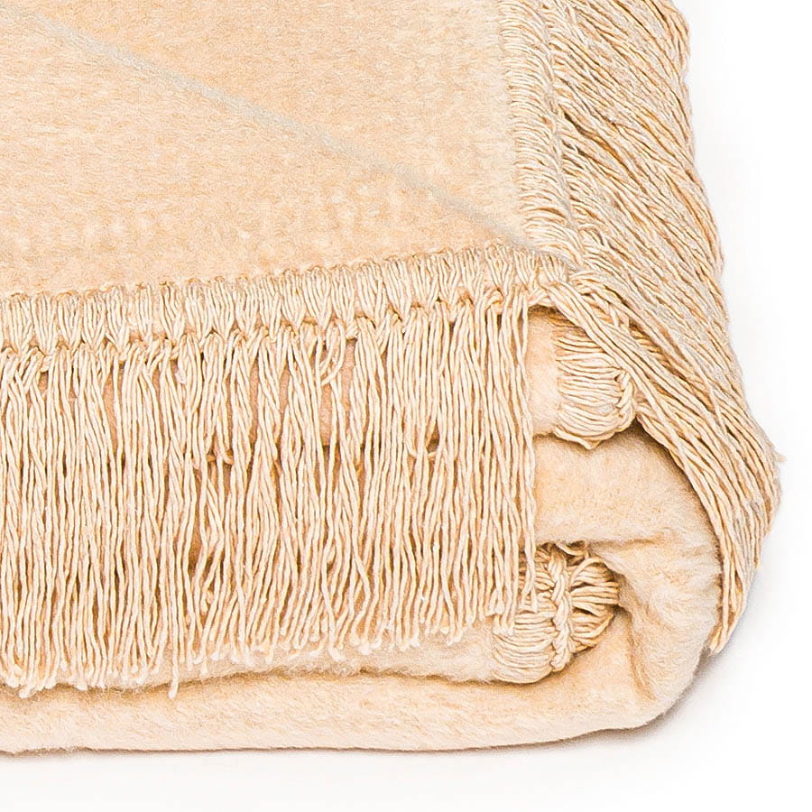 Eleganckie frędzle na brzegach podkreślają przytulny charakter koca i nadają mu dekoracyjnego wykończenia.