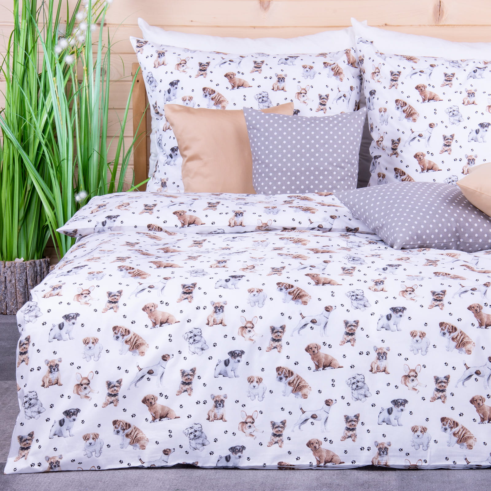 Pościel bawełniana 120x160 cm Pieski + łapki na białym tle