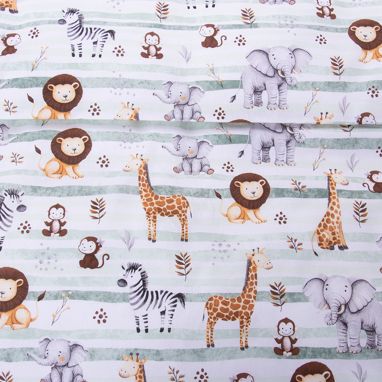 Pościel bawełniana 120x160 cm Safari z zielonymi pasami