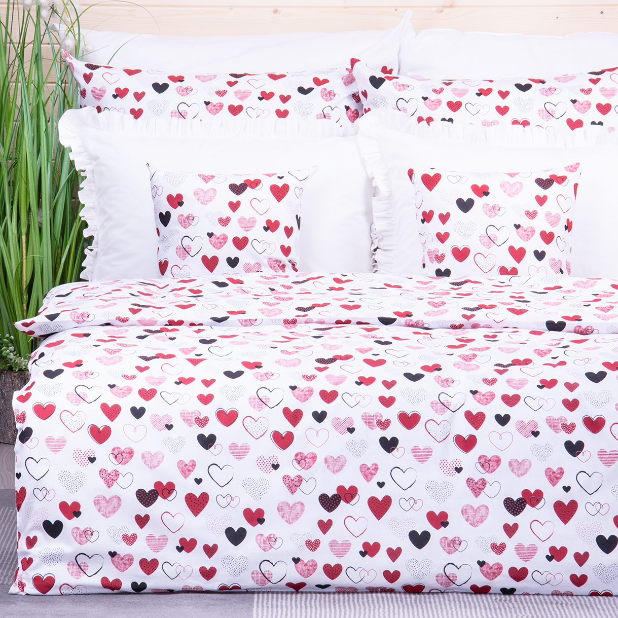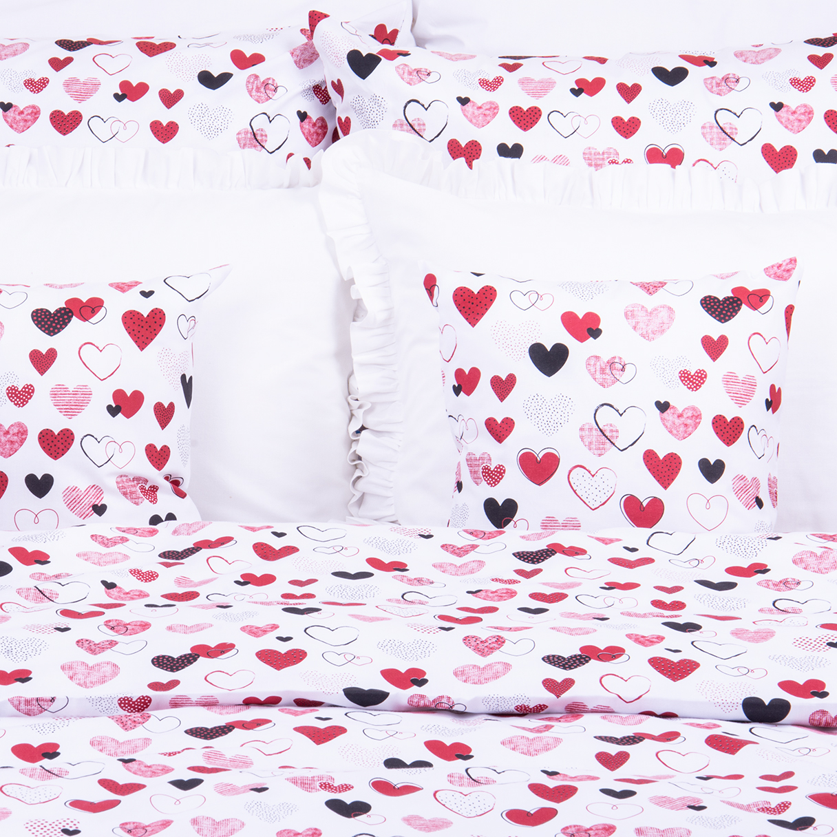 Pościel bawełniana 140x200 cm Czerwone serduszka