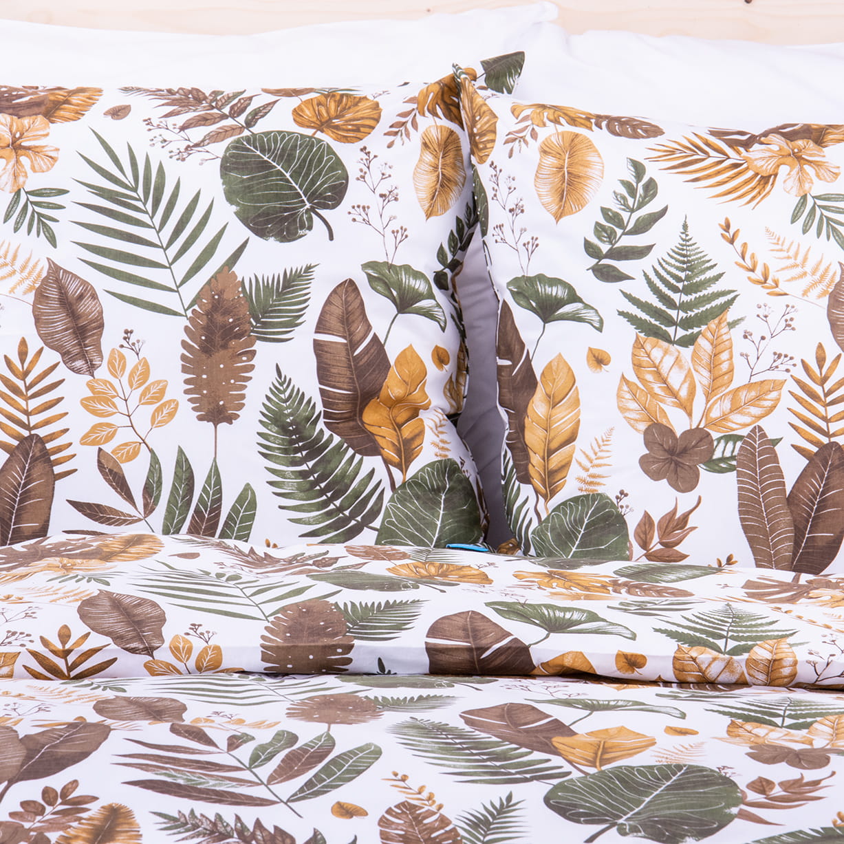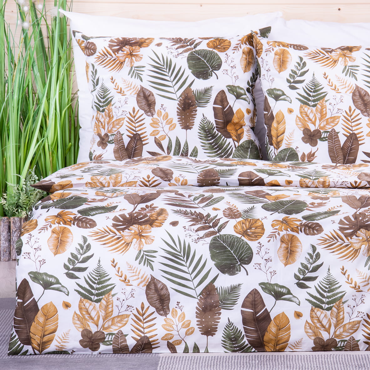 Pościel bawełniana 160x200 cm Brązowo-złote liście