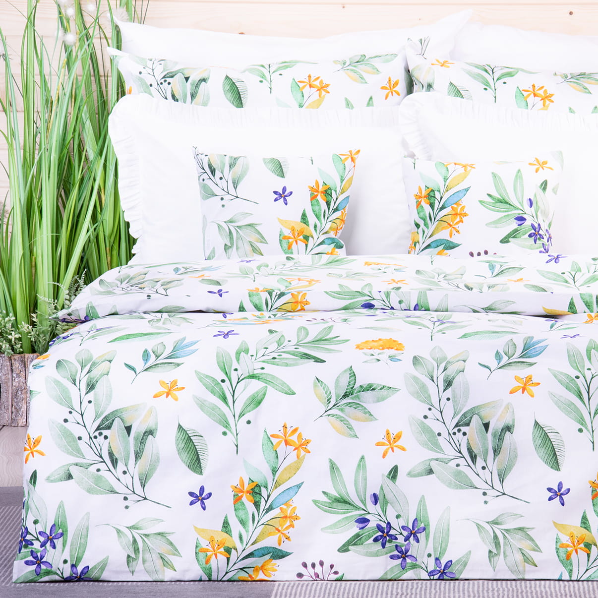 Pościel bawełniana 160x200 cm Egzotyczne kwiaty i liście