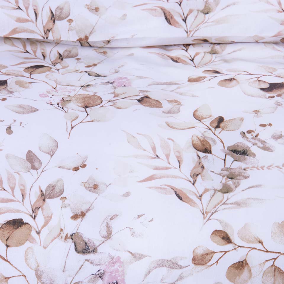 Pościel bawełniana 160x200 cm Eukaliptus beżowy