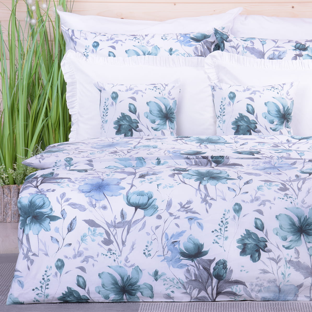 Pościel bawełniana 160x200 cm Hibiskus turkus