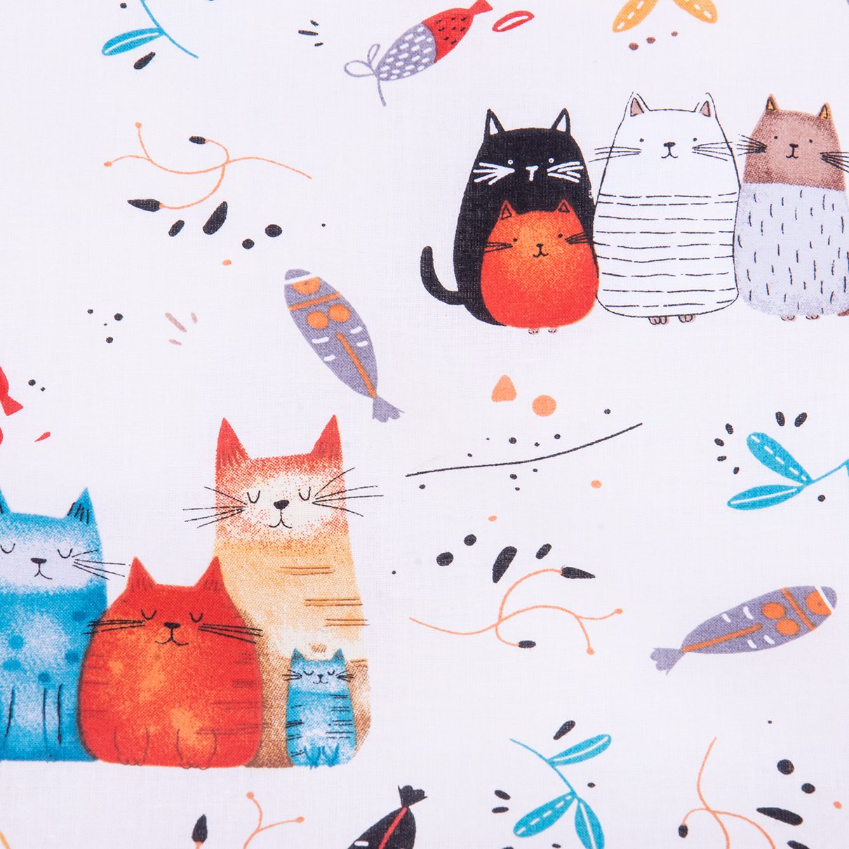 Pościel bawełniana 160x200 cm Kolorowe kotki na kremie