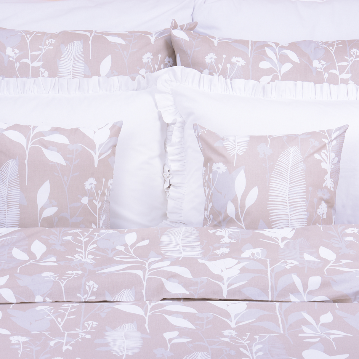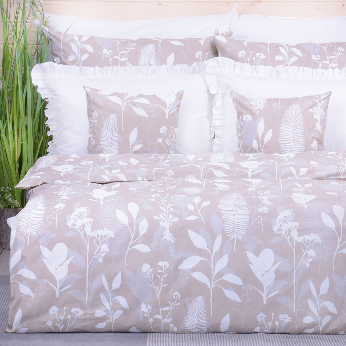 Pościel bawełniana 160x200 cm Liście na beżu