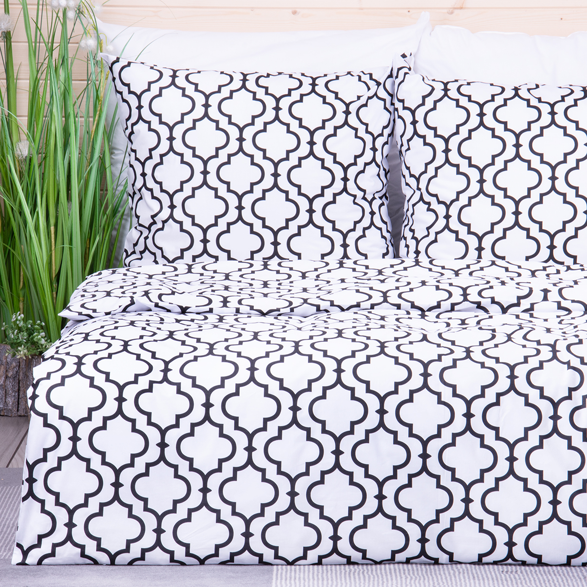 Pościel bawełniana 160x200 cm Maroko czarne na białym