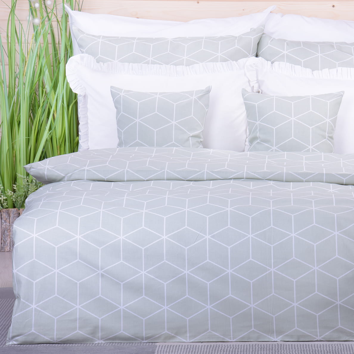 Pościel bawełniana 160x200 cm Mozaika szałwia