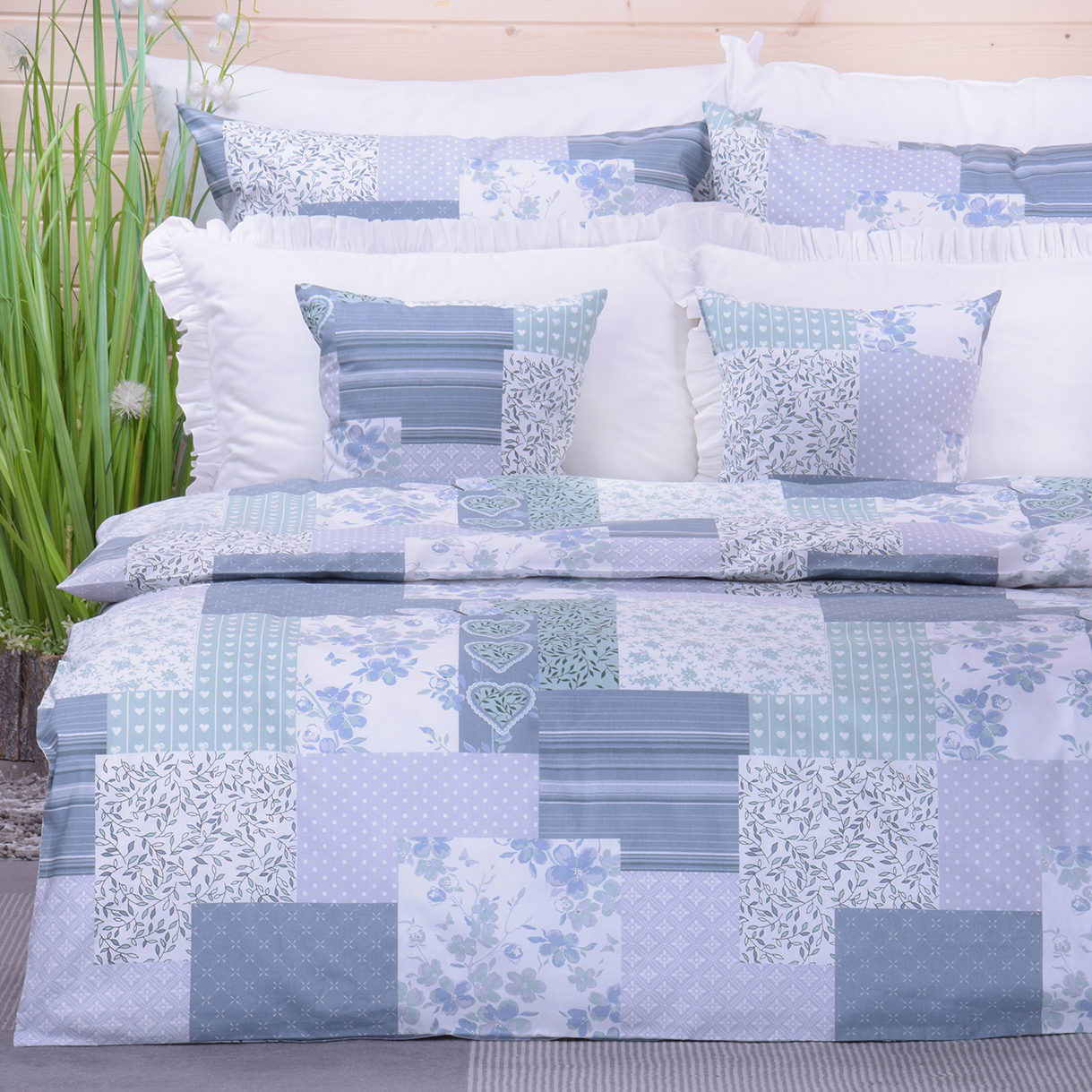 Pościel bawełniana 160x200 cm Patchworek mięta